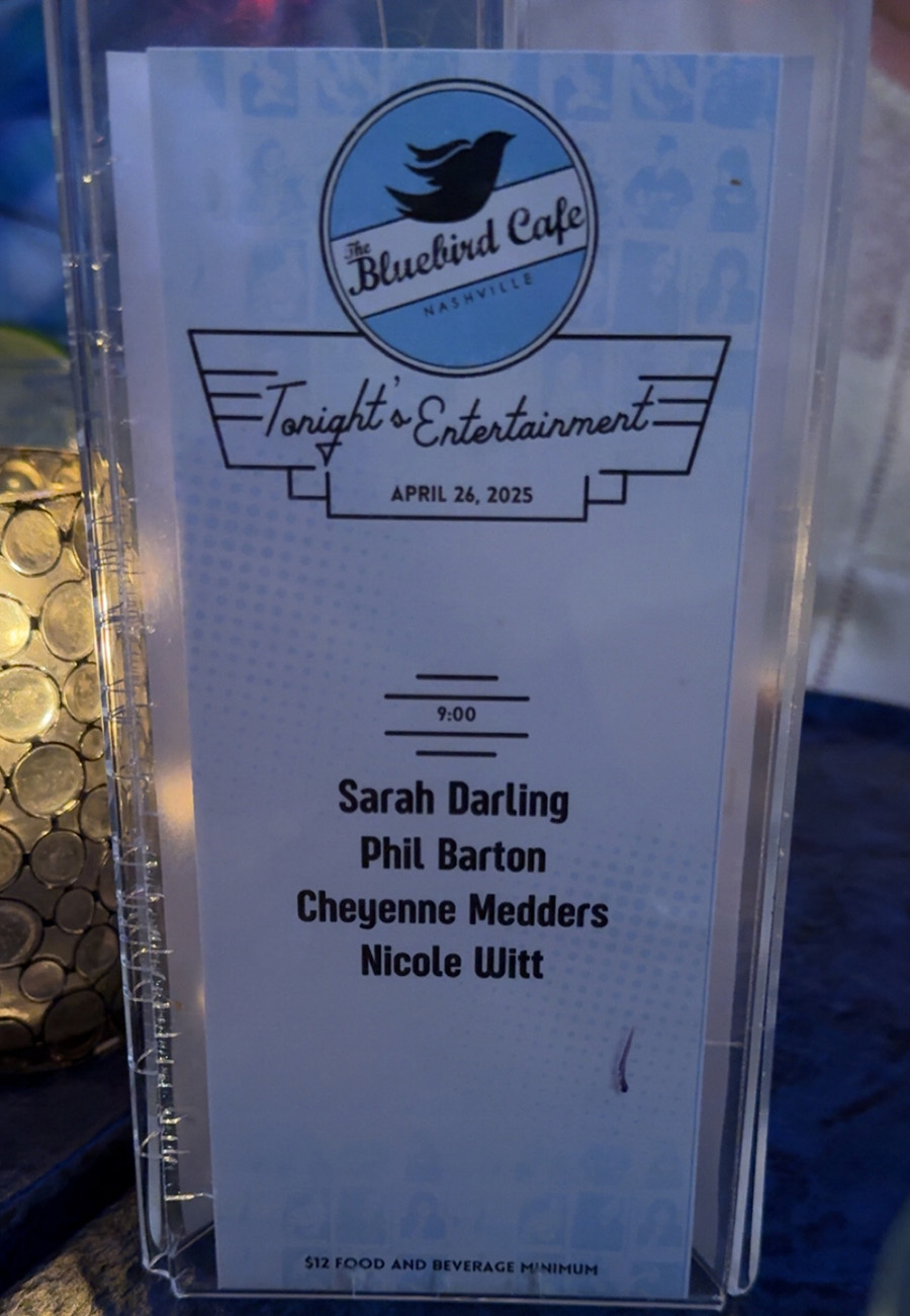 We got tickets to the Bluebird, something Melissa has always wanted to do. We had no idea what to expect since tickets were only $12 a piece. It was an “in the round” evening where we got to listen to 4 different artists and tell stories. It was fascinating. And truly the best part of the trip.